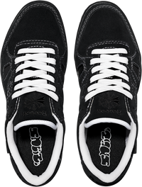 Full suede upper, white contrast stitch, technical fabric liner. SNEEZE logo woven tab on side. Includes secondary pair of black laces.